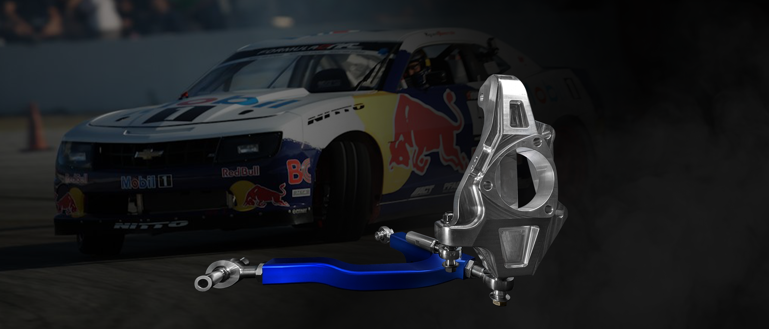 The kit includes both billet spindles, lower control arms, outer tie-rods, heim joints, spacers, and hardware. Our system is the combination of over 10 years of testing in professional level drifting and road racing. The steering angle increases from 38* to over 70*, faster steering response, roll center correction, and 1” drop in ride height to allow proper shock travel. Wheel bearing has been pushed outboard to reduce scrub radius on cars with wider wheels, and more. Our system has been used on every Pro level gen 5 drift Camaro in Formula Drift history, and in various series in Dubai, Qatar, Australia, Europe, and Canada.