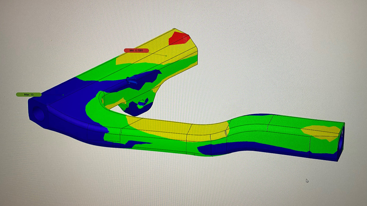 Each blu808 component is designed on CAD using Fusion 360 and NX software. Each part is 3d printed after being designed to ensure proper fitment and kinematics. After many design changes and reviews we will then put each component through our FEA testing programs to ensure the system is strong enough for track use. After first article review we then move into production.